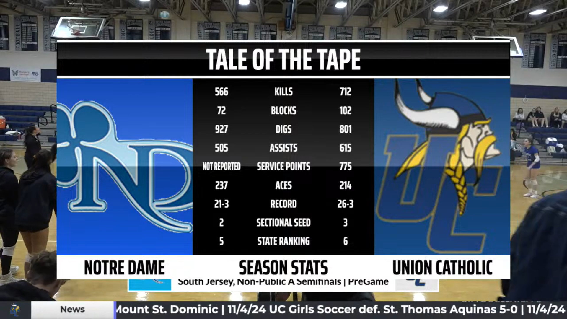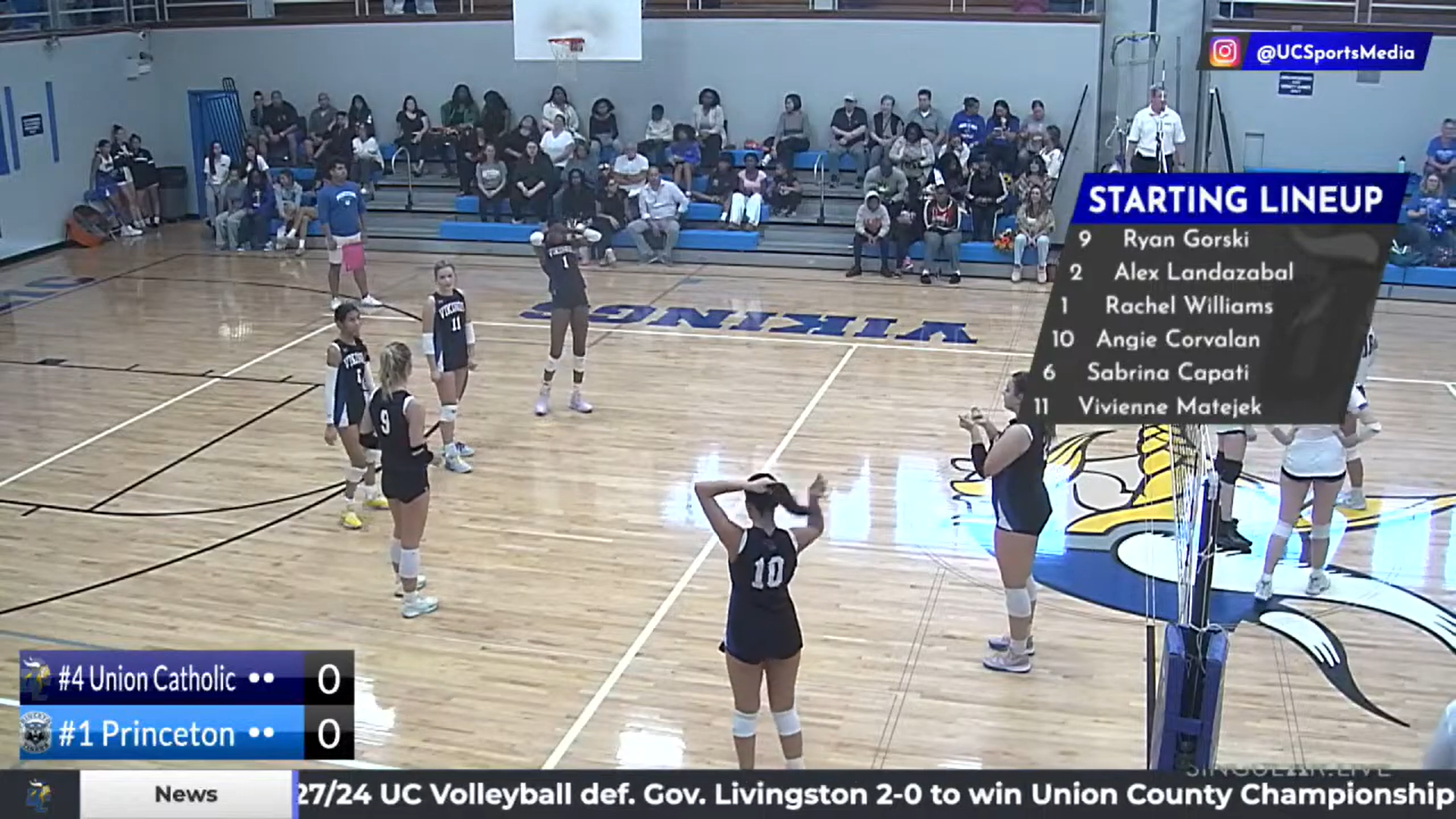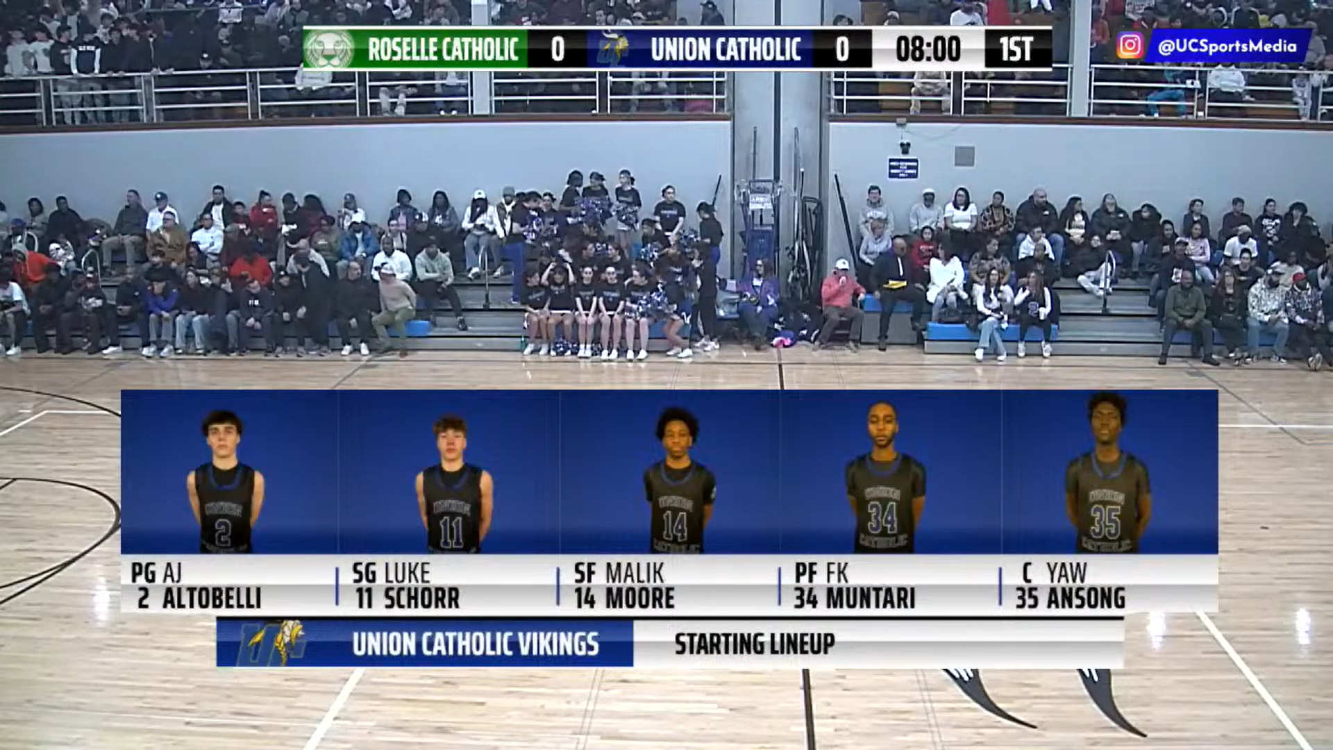 I ran Union Catholic’s broadcast graphics through the UNO overlay system, managing live scorebugs, matchup cards, starting lineups, and stat pages in real time. My responsibility was to operate them smoothly and keep everything accurate during both home and road games